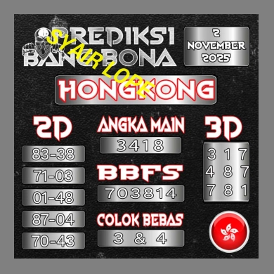 Berikut adalah hasil SYAIR HK yang berasal dari SYAIR GUCCI MAS HARI INI :