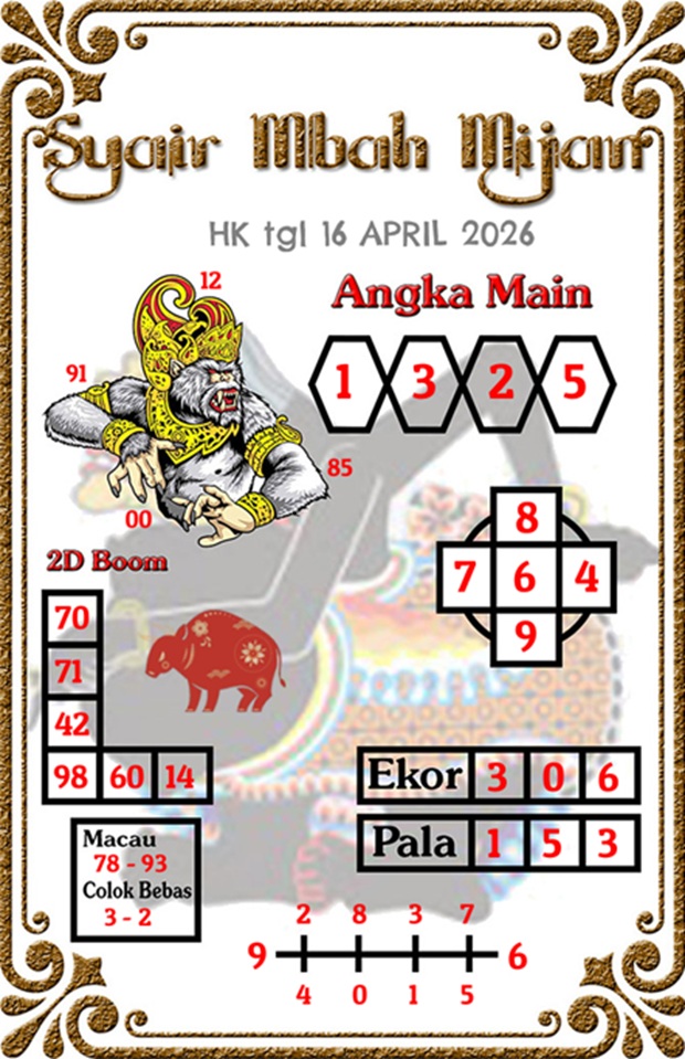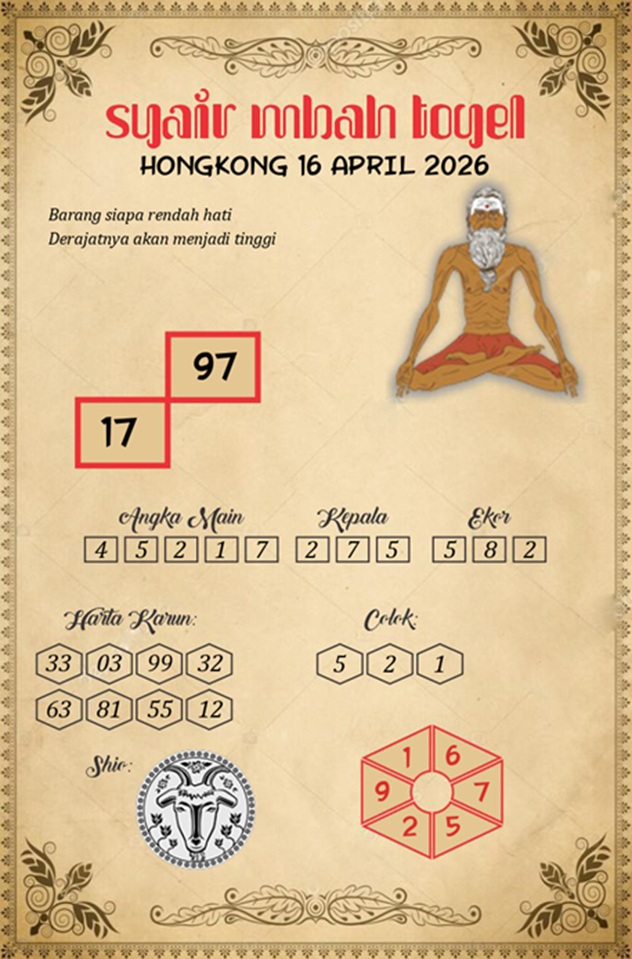 Berikut adalah hasil SYAIR HK yang berasal dari SYAIR GUCCI MAS HARI INI :