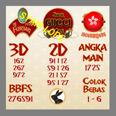 SYAIR HK GUCCI MAS SENIN 23 FEBRUARI 2026 – Halo semua toto lovers Hongkong semoga dalam keadaan sehat. Sebelum menjalankan permainan togel ada baiknya membandingkan hasil prediksi anda dengan prediksi yang admin berikan hari ini.
