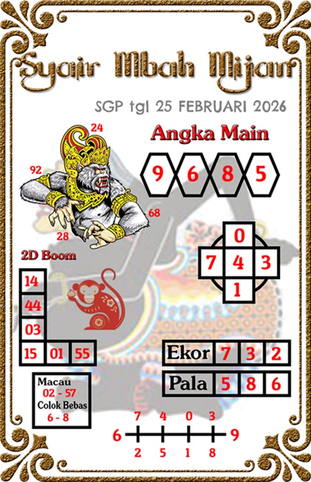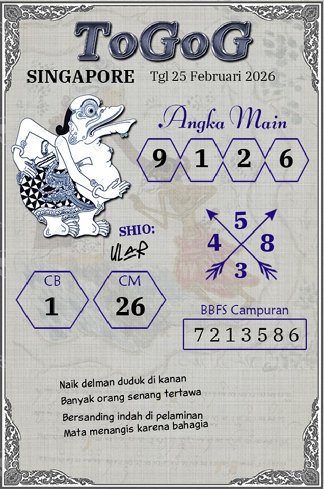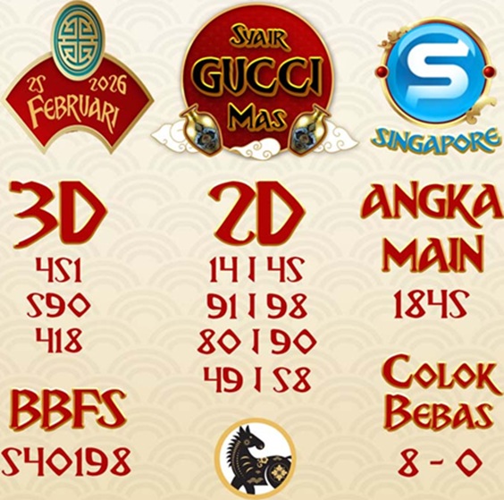 SYAIR SGP GUCCI MAS RABU 25 FEBRUARI 2026 – Halo semua toto lovers Singapore semoga dalam keadaan sehat. Sebelum menjalankan permainan togel ada baiknya membandingkan hasil prediksi anda dengan prediksi yang admin berikan hari ini.